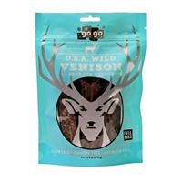 GoGo's USA Wild Venison Jerky Bars are made with your little carnivore in mind! Sourced from free-range wild Hawaiian axis venison these jerky treats are made with antioxidant rich blueberries, non-GMO chia and flax seeds, and fresh sweet potatoes that provide fiber, healthy fatty acids and micronutrients. Added glucosamine and chondroitin sulfate promote joint health, while rosemary and vitamin E keep the treats fresh. Fantastic for high-reward training, and treats can be broken into smaller pieces. Delicious, nutritious treats your pet will love! Net wt. 6 oz.