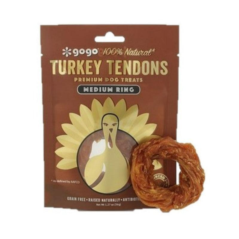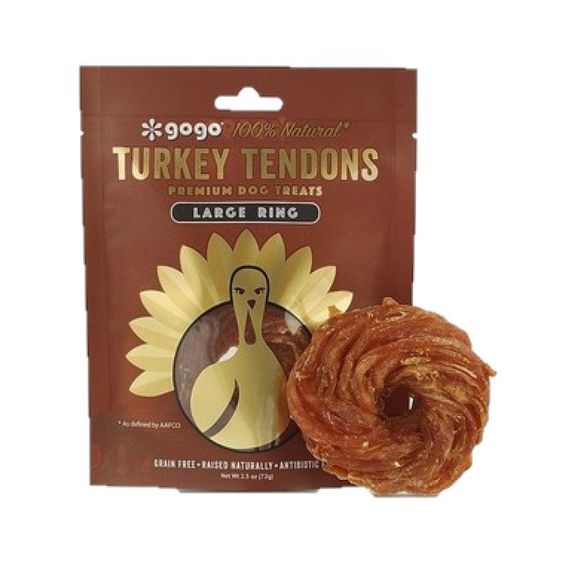 Is your fur baby needing a satisfying chew session? Try GoGo Turkey Tendon treats. Hand shaped and 100% all natural, limited ingredient treat that your dog will love. Each piece is hand shaped and packaged. Made in Vietnam.