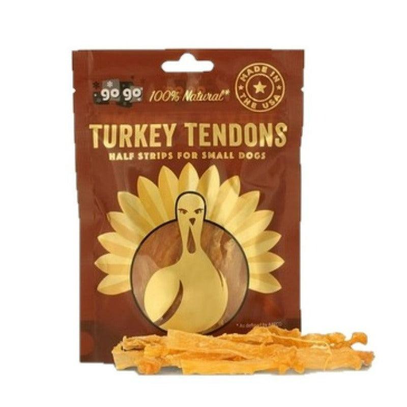 For a satisfying chew session try Go Go Turkey Tendons treats. 100% all natural, limited ingredient treat that your dog will love. Turkey is sourced, cooked and packed in the U.S.A.
