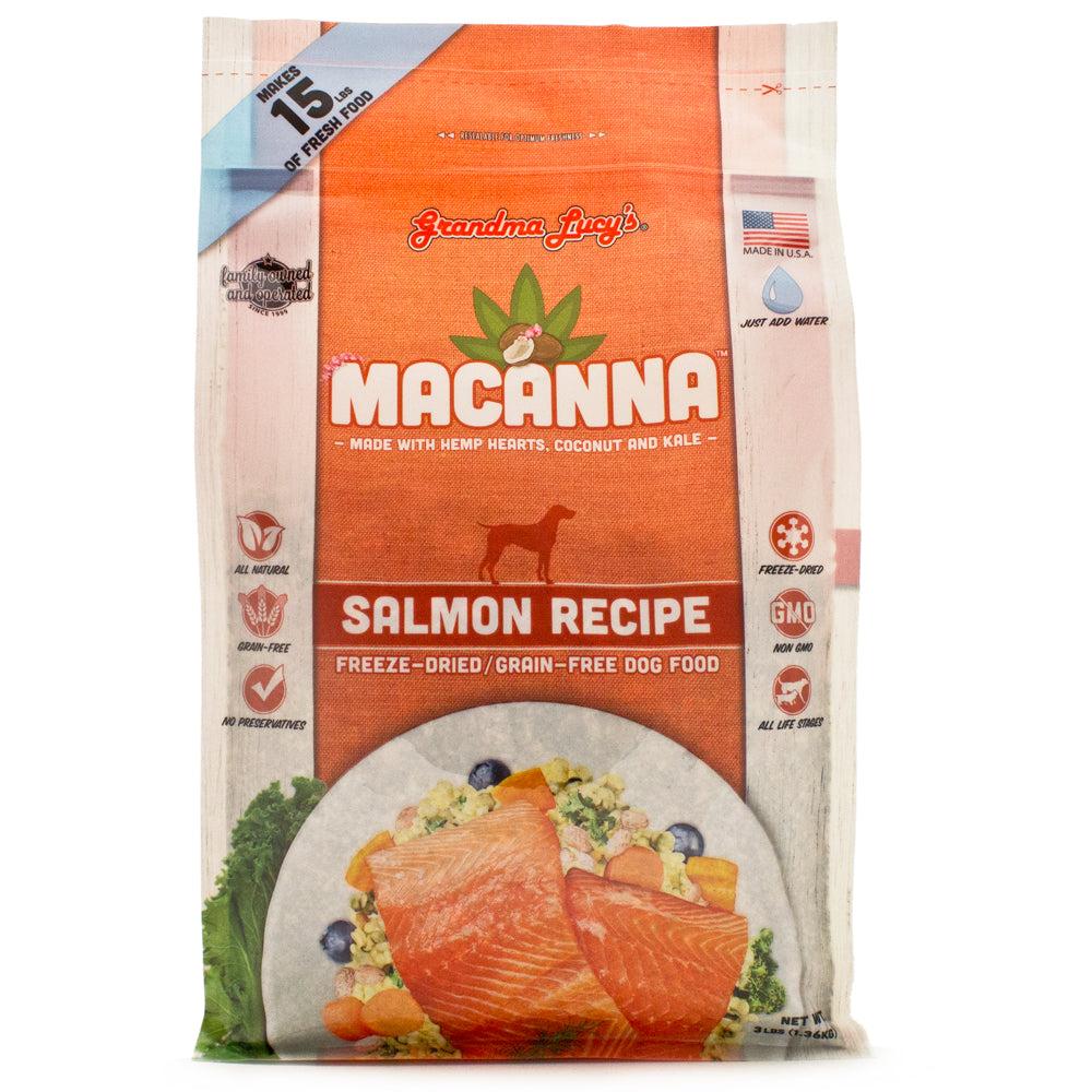 Not too many foods can boast such unique carbohydrate sources. With hemp hearts and pinto beans providing you with beneficial fibers and omega-3, Salmon Macanna is perfect for the really tummy or allergy sensitive pup! For an even richer flavor try adding a bone broth for extra protein and moisture.