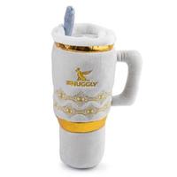 Cheers to festive playtime with this limited edition Holiday Snuggle Cup by Haute Diggity Dog. Your precious pooch will love the iconic tumbler design adorned with shimmering gold embroidery, and they will have a blast with its built in squeaker and satisfying crinkle.