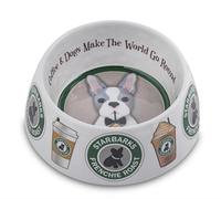 The Starbarks bowl makes mealtime match your coffee-loving lifestyle! The dapper dog inside this bowl delivers perfect truth- Coffee & Dogs Make the World Go Round. Chip-resistant melamine is durable at dinner and in the dishwasher. This bowl also has a non-skid bottom so your dog can get as enthusiastic as they like without chasing their food across the floor. Grab two of these bowls and a matching placemat to fully live out your coffeehouse dreams!