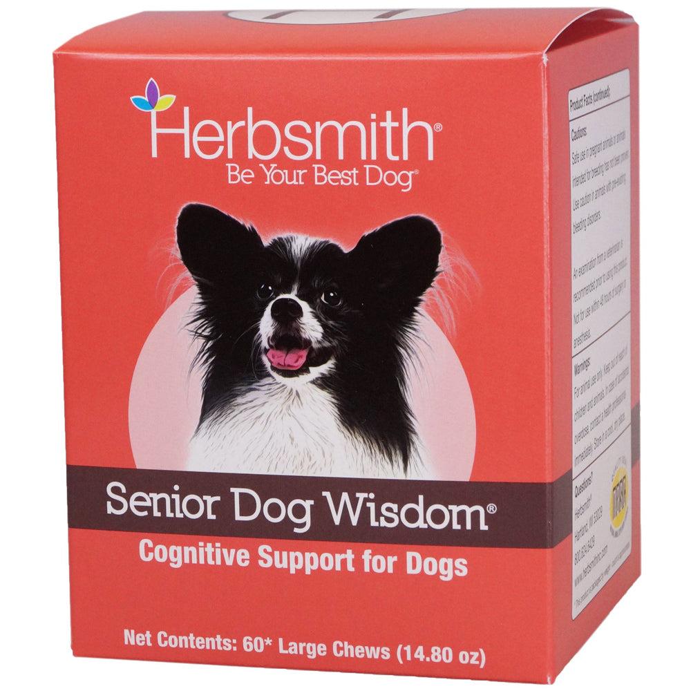 To support healthy brain function, veterinarians have developed a special formula for aging dogs. Senior Dog Wisdom by Herbsmith is a tasty soft chew made in the USA of brain-boosting nutrients including alpha lipoic acid, l-carnitine and phospholipids. These ingredients may help dogs who are experiencing diminished mental function.