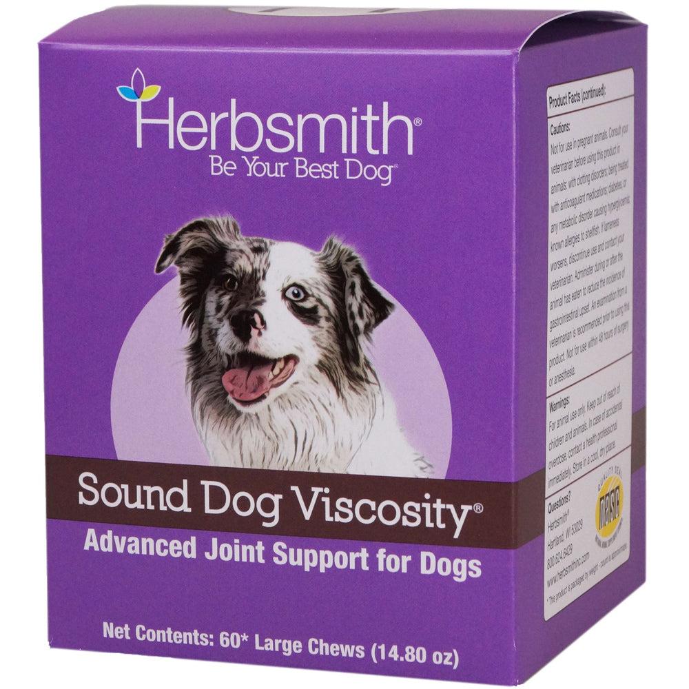 When your dog's joints aren't in tip-top shape, being active can be painful. Sound Dog Viscosity Chews are a supplement to help with these joint problems. This dog joint supplement is a glucosamine-formula that helps keep the viscosity of joint fluid. The Sound Dog Viscosity Chews also contain the ingredients Chondroitin, MSM, and Herbs to aid in joint health as well. 60 count bottle, choose small chews or large.