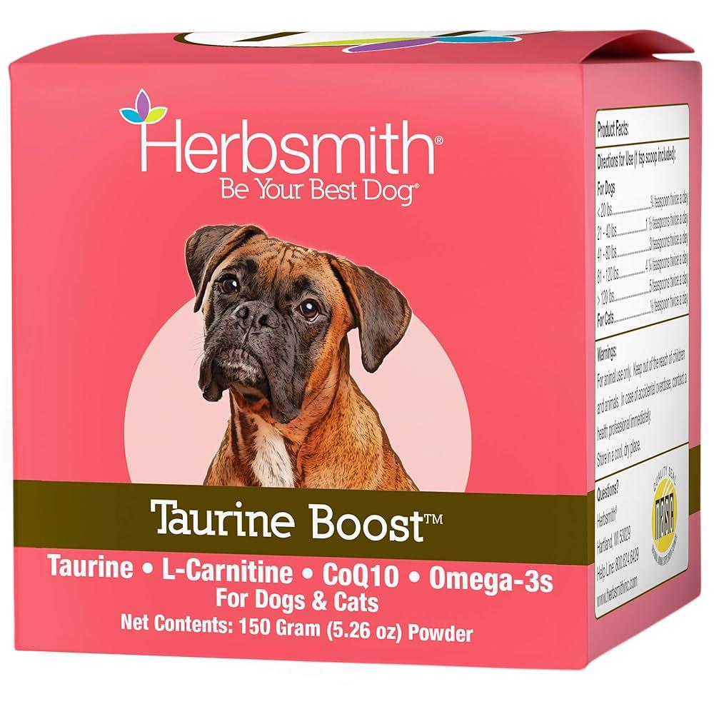 Keep your pet's heart healthy with a Taurine Boost from Herbsmith! This amino acid is crucial in keeping your pet's cognitive and cardiovascular systems in tip top shape. It's as simple as mixing a scoop in with your pet's daily meal! In addition to taurine, this supplement also contains Omega 3's from krill, Coenzyme Q10, and L-Carnitine to give an even further support your pet's heart, immune systems, and muscle health!