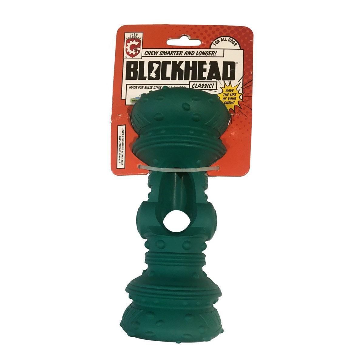Challenge your speedy chewer with the Guardian Blockhead from Himalayan Pet Supply, a strong, durable, and fun toy that helps slow down heavy chewers, extending the life of the treat. Holds treats such as bully sticks and Himalayan chews (or peanut butter, apples, etc.). Simply insert the chew in from the top to hold it in place, then watch your canine buddy's problem-solving skills engage as they work at figuring out how to get to the chew. Not just a toy, a mental and physical workout for your fur buddy. 100% synthetic rubber, top shelf dishwasher safe.