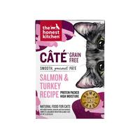 Wild-caught salmon and cage-free turkey unite in The Honest Kitchen's Câté Grain Free Salmon & Turkey Pâtè recipe that will tempt the finickiest feline! No artificial preservatives, fillers, feed grade by-products, GMO ingredients, soy, wheat or corn. Made in the USA with human grade ingredients and produced in a human food facility. Net wt. 5.5 oz box.