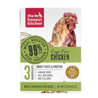 Let's get honest about dog foodkibble is kind of bland! 99% Chicken Meal Boosters by The Honest Kitchen is a nutritious and delicious meal booster. Enhance your dog's bowl with this human grade stew to add flavor variety and extra protein. Made with three ingredients and no added hormones or antibiotics, you can feel confident about giving your dog this meat protein booster! Not only are you adding extra protein, you are adding extra moisture, which is good for your dog's overall health.