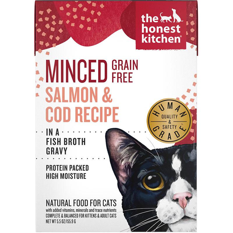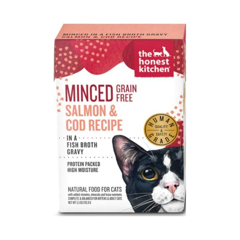 Your fish-loving feline will adore the Minced Salmon & Cod In Fish Bone Broth Gravy by The Honest Kitchen! Made in the USA with human-grade ingredients like wild-caught salmon and cod, this minced recipe is the wet food of your cat's dreams. Plus, this gourmet wet food is simmered in savory fish bone broth gravy so your cat gets the extra moisture their body needs. And with no artificial preservatives, fillers, feed-grade by-products, GMO ingredients, soy, wheat, or corn, you can feel confident in the food you give your feline friend! With so much to love, it's no wonder even the pickiest of kitties love this mouthwatering recipe!