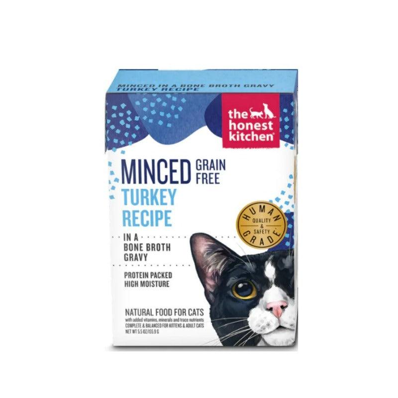For a savory, protein-packed recipe your cat will love, try The Honest Kitchen's Minced Turkey In Bone Broth Gravy! Made in the USA with human-grade ingredients like cage-free turkey, this minced recipe is totally tasty. Simmered in a mouthwatering bone broth gravy, this high-moisture formula ensures your cat gets the extra moisture their body needs. Plus, with no artificial preservatives, fillers, feed-grade by-products, GMO ingredients, soy, wheat, or corn, you can feel good about the wet food you give your feline friend. Simply delicious, even the finickiest of felines will fall in love with this high-quality formula!