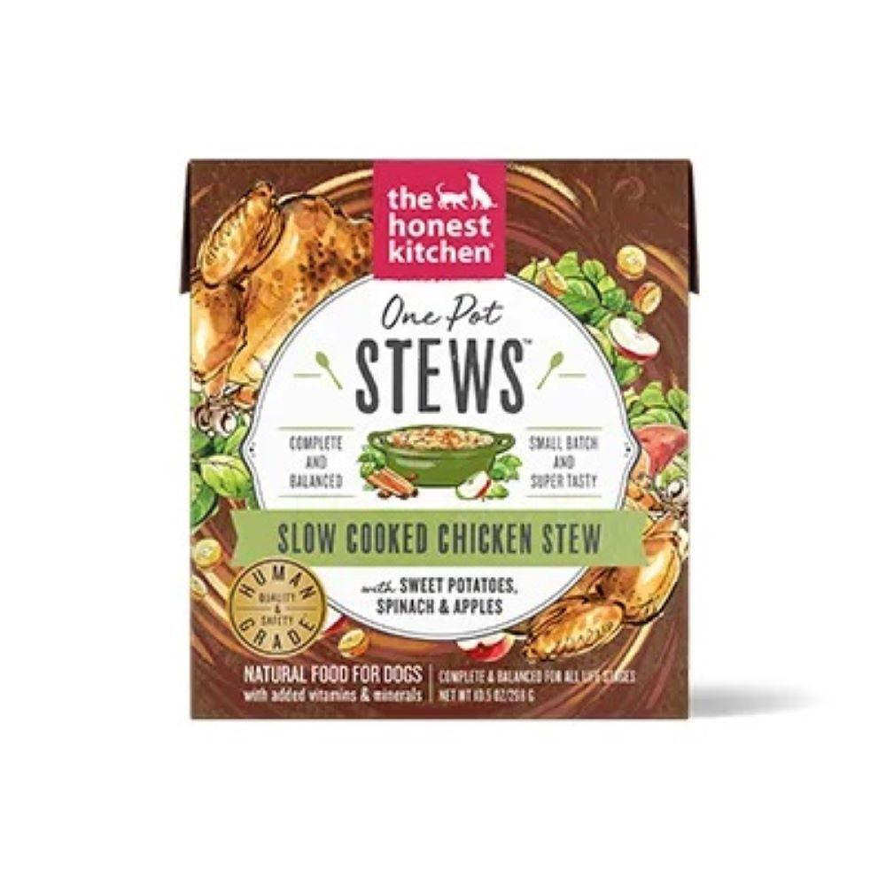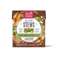 One Pot Stews Slow Cooked Chicken with Sweet Potato, Spinach & Apples Recipe Dog Food from Honest Kitchen is a hearty & satisfying meal, just like you'd make at home! Full of protein-rich cage-free chicken (all meat is hormone and antibiotic free) with nutritious sweet potatoes and spinach with a touch of cinnamon! Honest Kitchen doesn't skimp on quality ingredients. Their recipes are 100% human grade whole foods with no by-products, no preservatives, no corn, wheat, soy or GMO ingredients - just healthy, wholesome goodness. Convenient package makes it easy for travel, pet sitters, and quick meal prep at home. Perfect as a complete and balanced meal, or a tasty topper. This delicious recipe is going to be a new favorite with your dog - better stock up! Net wt. 10.5 oz box.