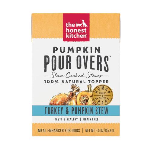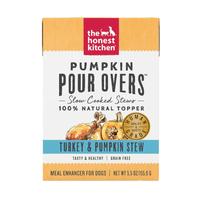 Looking to boost the taste and nutrition in your dog's diet? Turkey and Pumpkin Pour Overs, by The Honest Kitchen, are a nutritious and delicious meal booster made with 100% human-grade ingredients and no preservatives. The added pumpkin in this stew will boost your dog's bowl with flavor, variety, texture, and added fiber! Fiber helps firm up your dog's stool, aid in transitioning between foods, and make your dog feel fuller for longer! This pumpkin pour-over is a must to have in every puppy's pantry! Not only are you adding flavor, but you are also adding extra moisture, which is good for your dog's overall health.