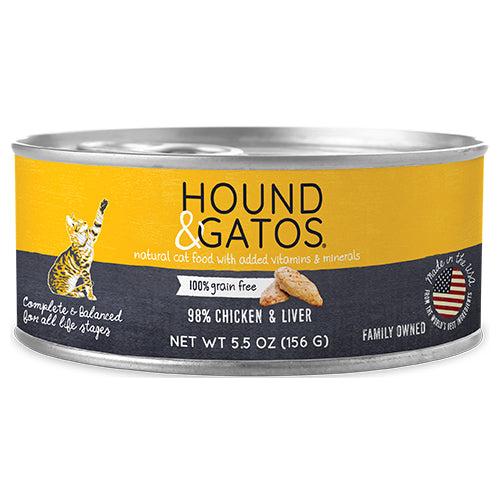 Hound & Gatos Chicken & Chicken Liver is a nutritious, tasty and single meat-based wet food your feline friend will love! Made from 98% chicken and chicken liver, and is grain free, with no by-products, corn, soy or fillers. Made with agar-agar as a natural binder. Your kitty will vote paws up for this complete and balanced meal! Comes in 5.5 oz can. Made in U.S.A.