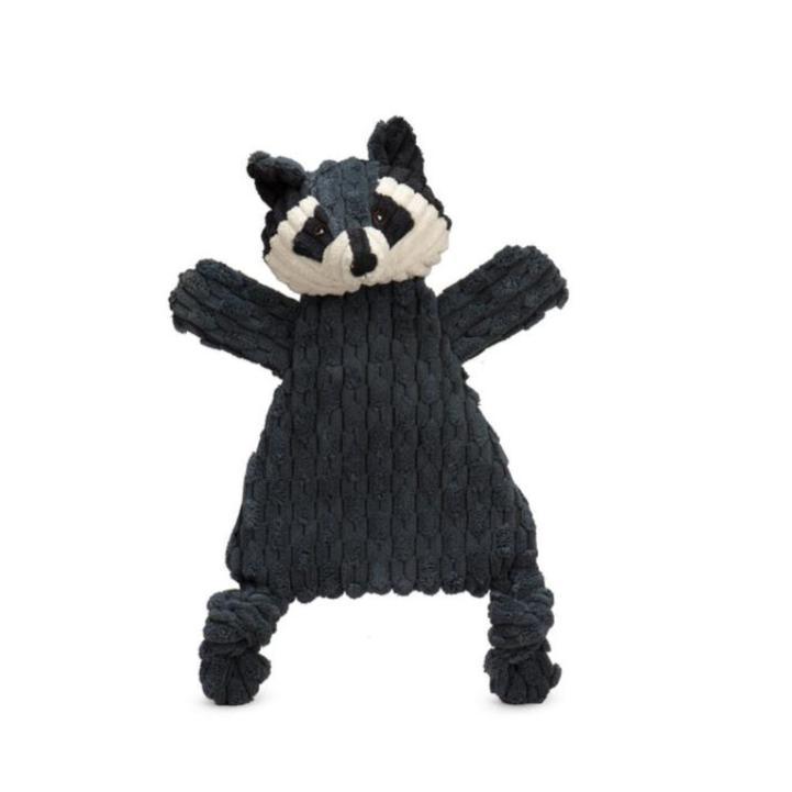 With his gray body and adorable masked face HuggleFlatties™ Reggie Raccoon by HuggleHounds is ready for fun! This adorable toy is designed for tough play and features a durable, three-layer lining while still being soft and snuggly on the outside. And with 3 squeakers, crinkle paper and no stuffing in the body this raccoon will keep your pooch entertained longer. Plus, he's machine washable to keep playtime clean! There's no doubt your pup will adore the newest addition to their toy collection!