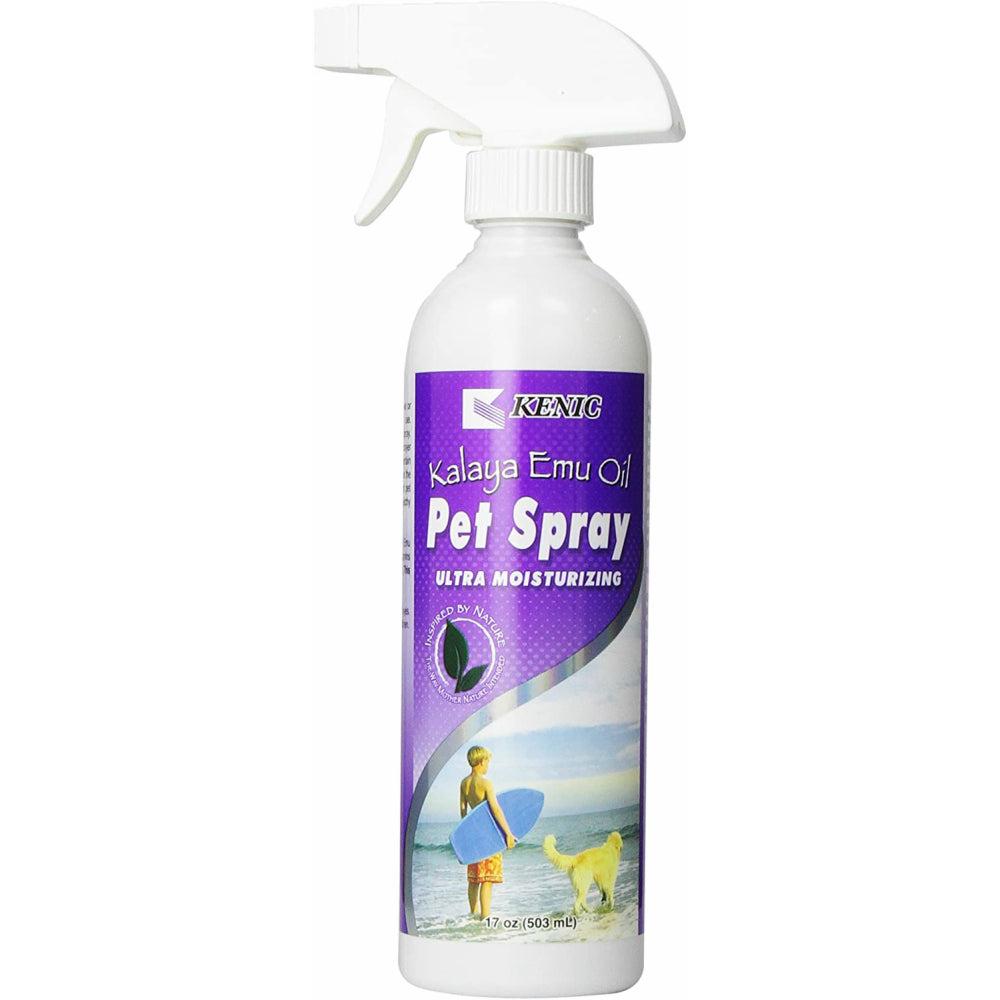 Kenic Kalaya Emu Oil Pet Spray is perfect for use between baths as a daily grooming aid. Moisturizes the skin and helps reduce inflammation. Spray on and brush through for a beautiful, soft and healthy coat. Contains 1% Emu oil. Made in the USA. 17 oz.