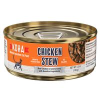 Get some extra moisture in your cat's diet with KOHA's Chicken Stew! Big, tender chunks of premium chicken marinated in flavorful gravy is enough to have even our mouths watering, but keep your paws off! This meal is for kitties only - even the picky ones! Limited ingredients make KOHA's stews ideal for rotational feeding, and each recipe features pumpkin to aid digestion, New Zealand mussels for joint health, and cranberries to support a healthy urinary tract. There are no grains, glutens, or icky fillers, and meat is always the first ingredient. Perfect as a topper or a full meal! Available in 5.5 oz cans. Made in Canada.