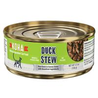 Get some extra moisture in your cat's diet with KOHA's Duck Stew! Big, tender chunks of premium duck marinated in flavorful gravy is enough to have even our mouths watering, but keep your paws off! This meal is for kitties only - even the picky ones! Limited ingredients make KOHA's stews ideal for rotational feeding, and each recipe features pumpkin to aid digestion, New Zealand mussels for joint health, and cranberries to support a healthy urinary tract. There are no grains, glutens, or icky fillers, and meat is always the first ingredient. Perfect as a topper or a full meal!