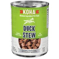 Big, tender chunks of premium duck from France marinated in flavorful gravy?our mouths are watering just thinking about it. Unfortunately for us, even though its made from human-grade ingredients, this yummy meal is for dogs only! Designed for rotational feeding, each recipe in KOHAs line of stews features pumpkin to aid digestion and New Zealand mussels for joint health. There are no grains, glutens, or icky fillers, and meat is always the first ingredient. Perfect as a topper or a full meal!