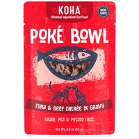 Meal time will never be boring again with delicious cuisine from Koha. This moisture rich Poke Tuna and Beef in Gravy entree has shreds of wild caught tuna and beef in gravy. It is grain free, non GMO, dolphin safe and is free of preservatives and additives. Add some tasty nutrient dense protein and hydration to your cat's diet for optimal health.