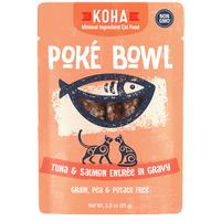Meal time will never be boring again with delicious cuisine from Koha. This moisture rich Poke Tuna and Salmon entree has shreds of wild caught tuna and salmon in gravy. It is grain free, non GMO, dolphin safe and is free of preservatives and additives. Add some tasty nutrient dense protein and hydration to your cat's diet for optimal health.