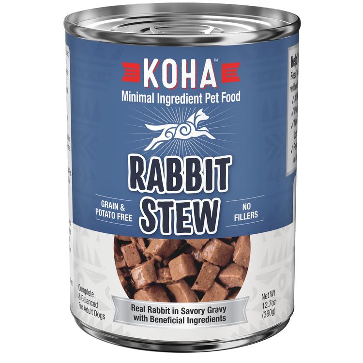 Big, tender chunks of premium USA rabbit marinated in flavorful gravyour mouths are watering just thinking about it. Unfortunately for us, even though it's made from human-grade ingredients, this yummy meal is for dogs only! Designed for rotational feeding, each recipe in KOHA's line of stews features pumpkin to aid digestion and New Zealand mussels for joint health. There are no grains, glutens, or icky fillers, and meat is always the first ingredient. Perfect as a topper or a full meal!