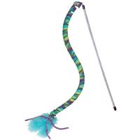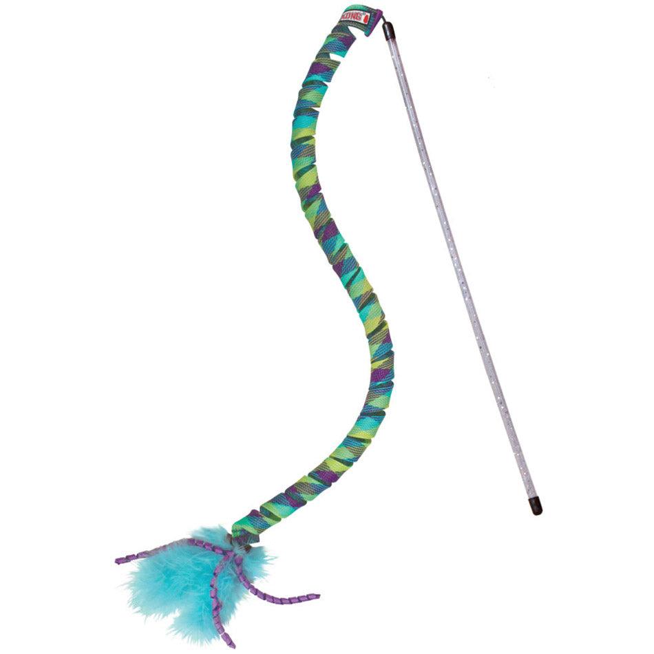 Cats will have the time of their nine lives with Kong's Curlz Teaser! This glittery wand has an attached springy spiral curl with boa feathers and ribbon topping off the end, making for the perfect way to get some quality play time with your kitty! Simply dangle the wand and watch the bouncing, pouncing fun begin!