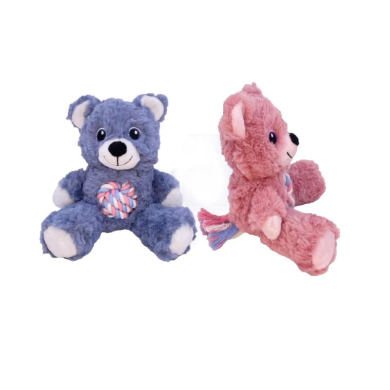 KONG Knots Teddy Rope toy is more than just a plush companion—it’s a playtime powerhouse wrapped in irresistible softness. With a durable knotted rope tummy and tail, this cuddly critter satisfies your dog’s natural instincts to chew, shake, and fetch. Sold individually.