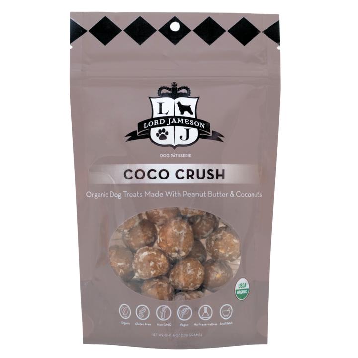 Your dog will go crazy for the tropic flavor of Lord Jameson Coco Crush. These delightful noms are the perfect bite-sized no-baked treats. Great for sensitive stomachs and allergy friendly. Organic, simple ingredients you can feel good about. Made in Colorado, USA. Net wt. 6 oz.