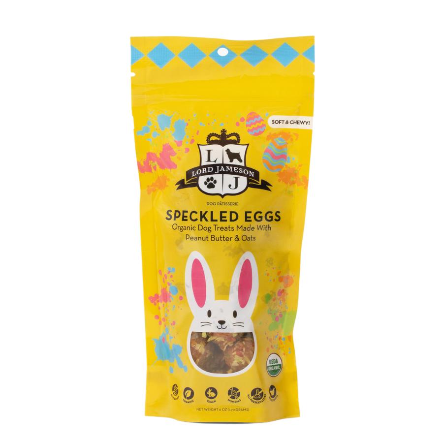 Spring has sprung with these delicious Speckled Eggs Dog Treats from Lord Jameson. Perfect for an on the go treat, these organic dog treats are made with wholesome ingredients like oats, beet and peanut butter. These tasty treats are great for training and fun! Made in Colorado, USA. Net wt. 6 oz.