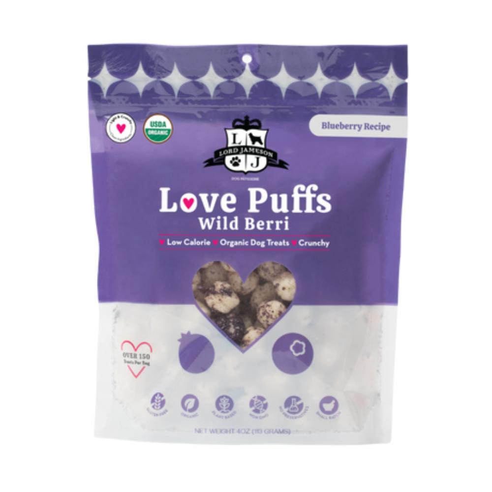 Show your favorite fur ball you love them "berri" much with Lord Jameson Wild Berri Organic Dog Treats! Deliciously blended with hints of sweet blueberry and tropical coconut, your pooch will love these adorable puff-shaped treats. Perfect for training time, or for a fun treat! These crunchy, plant-based, low calorie and vegan treats are made with clean ingredients, so you can feel good about sharing them with your furry friend.