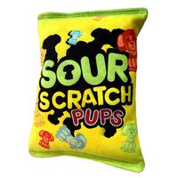 If your dog is just itching for some fun pick up this cute and colorful Power Plush Sour Scratch Pups toy! Dogs love toys they can fetch, catch and squeak - one look at the "ingredients" and you'll see why this toy will tick all your dog's boxes! Soft cover with reinforced seams, a plush fill, and an entertaining squeaker will keep your pet happy for long-lasting fun. Also makes a nice naptime pillow for pooped pups. Available in 2 sizes.