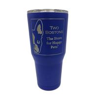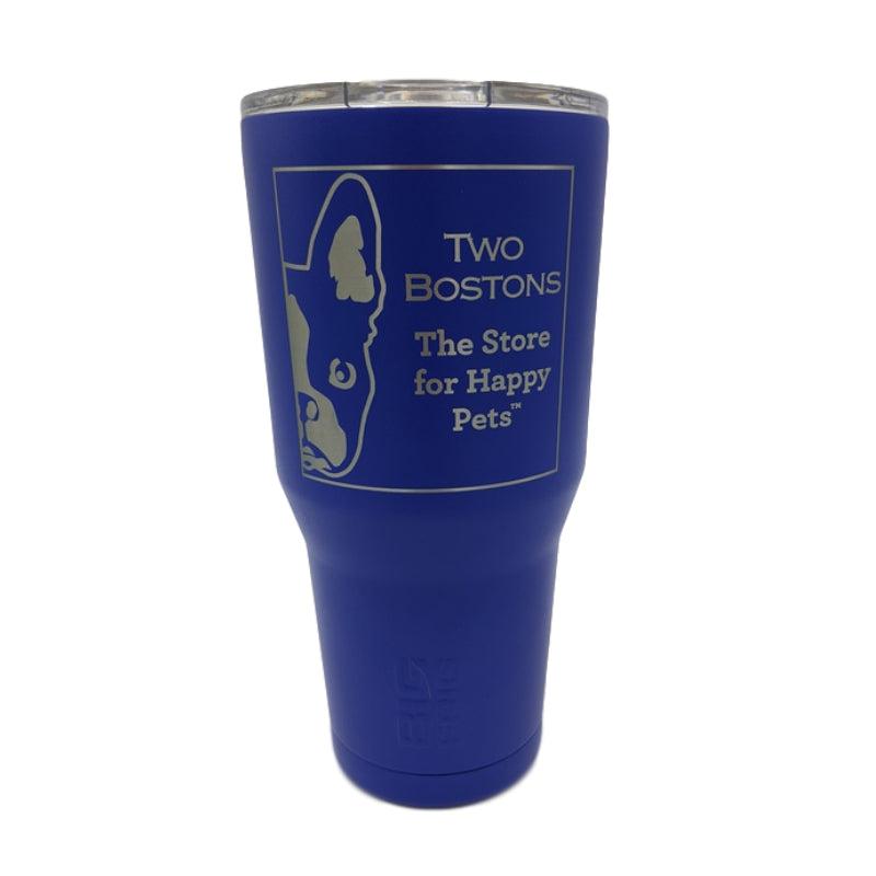 Hot or cold, keep your drink handy and the perfect temperature with the Big Two Bostons Tumbler! Tough and durable, our generously sized 30 oz tumbler from Big Frig is constructed from 18/8 stainless steel with vacuum insulation and keeps your drink of choice hot for +5 hours or cold for +50 hours! Two Bostons logo on one side with Dogs are not our whole lives, but they make our lives whole - Roger Caras on the opposite side. Fill it up and head out!