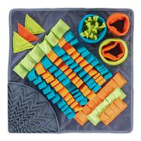 Challenge and engage your pet with Messy Mutts Forage Lick Mat Combo! This amazing mat combo features multiple fabric barriers and compartments to challenge and stimulate your dog's natural foraging skills. Made from high quality food grade safe silicone, BPA and PVC free, this mat combo is also odor and stain resistant! Hide your furry friend's favorite treats inside, or freeze their treat before spreading it onto the mat for an additional challenge. Works great for slow feeding as well. The mat measures 16" x 16" and has 6 integrated section cups to help secure the mat to the floor.