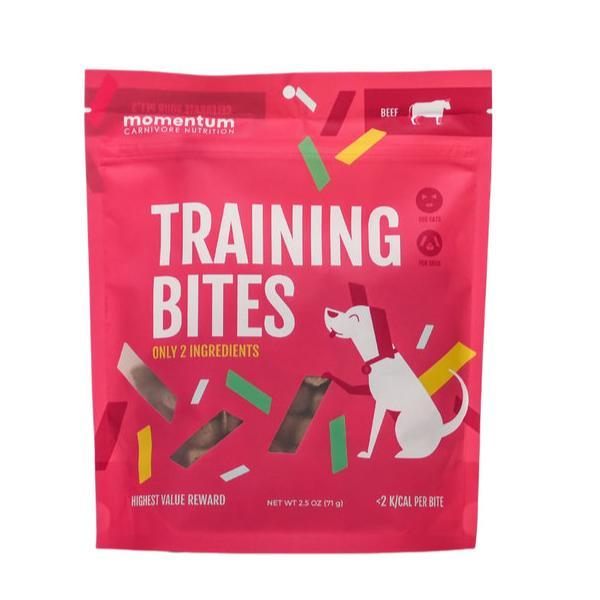 Beef Training Bites from Momentum Carnivore Nutrition is a high-protein, and conveniently sized tasty reward for positive reinforcement during training sessions.