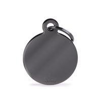 Timeless classic circle tag, made of a black brass. This product can be customized with up to 4 lines on the front and 4 lines on the back. The more lines of text provided, the smaller the font will be. In the Box Below - the 1st 4 Lines will be used for the front of the tag and the last 4 for the back. Made in Italy.