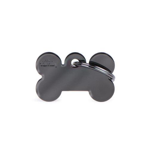 Timeless classic bone-shaped ID tag, made of black brass. This product can be customized with up to 4 lines on the front and 4 lines on the back. The more lines of text provided, the smaller the font will be. In the Box Below - the 1st 4 Lines will be used for the front of the tag and the last 4 for the back. Made in Italy.
