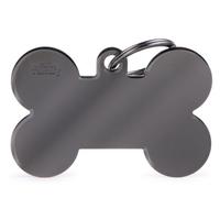 Timeless classic bone-shaped ID tag, made of black brass and sized for large dogs. This product can be customized with up to 4 lines on the front and 4 lines on the back. The more lines of text provided, the smaller the font will be. In the Box Below - the 1st 4 Lines will be used for the front of the tag and the last 4 for the back. Made in Italy.