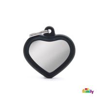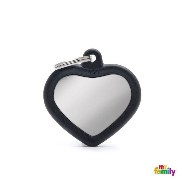 Hushtag Chromed Heart With Black Rubber Id Tag