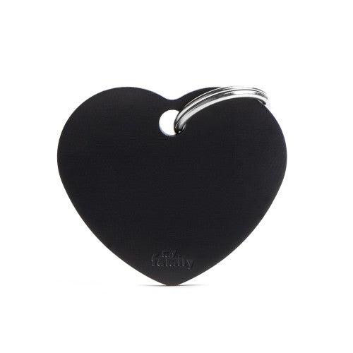 Basic large heart ID tag made of black aluminum. This product can be customized with up to 4 lines on the front and 4 lines on the back. The more lines of text provided, the smaller the font will be. In the Box Below - the 1st 4 Lines will be used for the front of the tag and the last 4 for the back.