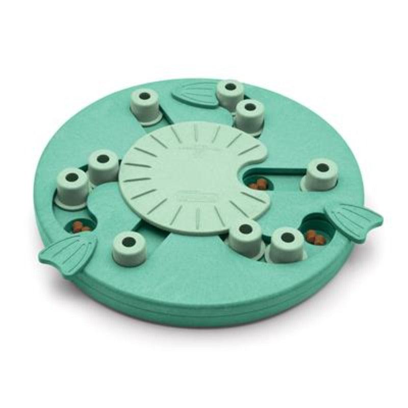Challenge your dog and provide mental stimulation with The Dog Worker puzzle toy from Nina Ottosson by Outward Hound. This advanced level 3 interactive puzzle will keep your pet busy as they search for treats or food in the hidden compartments. Demonstrate to your dog how to swivel the flippers, spin the wheel, and push the blocks, then watch as they go to work uncovering their tasty treasures. Made from a BPA, PVC, and phthalate-free composite material. No removable parts and easy to clean with warm water and soap.