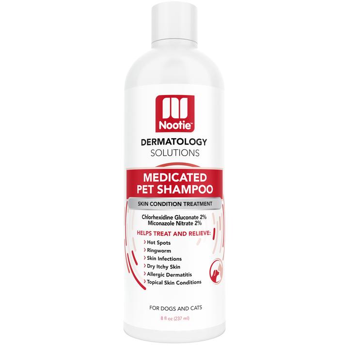Got an itchy pet? Relieve their symptoms with Nootie's Medicated Pet Shampoo! Formulated to help relieve skin irritations due to bacteria, fungus, and yeast, this product is ideal for pets with ringworm or dermatitis and can help prevent hotspot dermatitis. This shampoo is designed with veterinarian-strength ingredients and does not contain parabens, SLS, harsh chemicals, or dyes, so you can feel good about what you use to clean your pet. Plus, it will leave your pet's coat shiny, soft, and smelling great! Net wt. 8 oz.