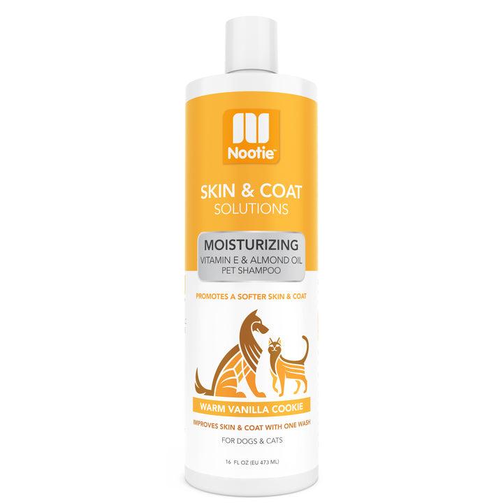 Nootie Moisturizing Vitamin E and Almond Oil Warm Vanilla Cookie Pet Shampoo has a delightful fresh-baked cookie aroma that will leave your pet's coat with a long-lasting and delicious fragrance. Sweet almond oil and Vitamin E gently moisturize, leaving your pet's coat soft and shiny. Made with all natural ingredients with no soap, parabens, sulfates, or harsh chemicals. Safe to use with topical flea and tick products. Net wt. 16 oz.
