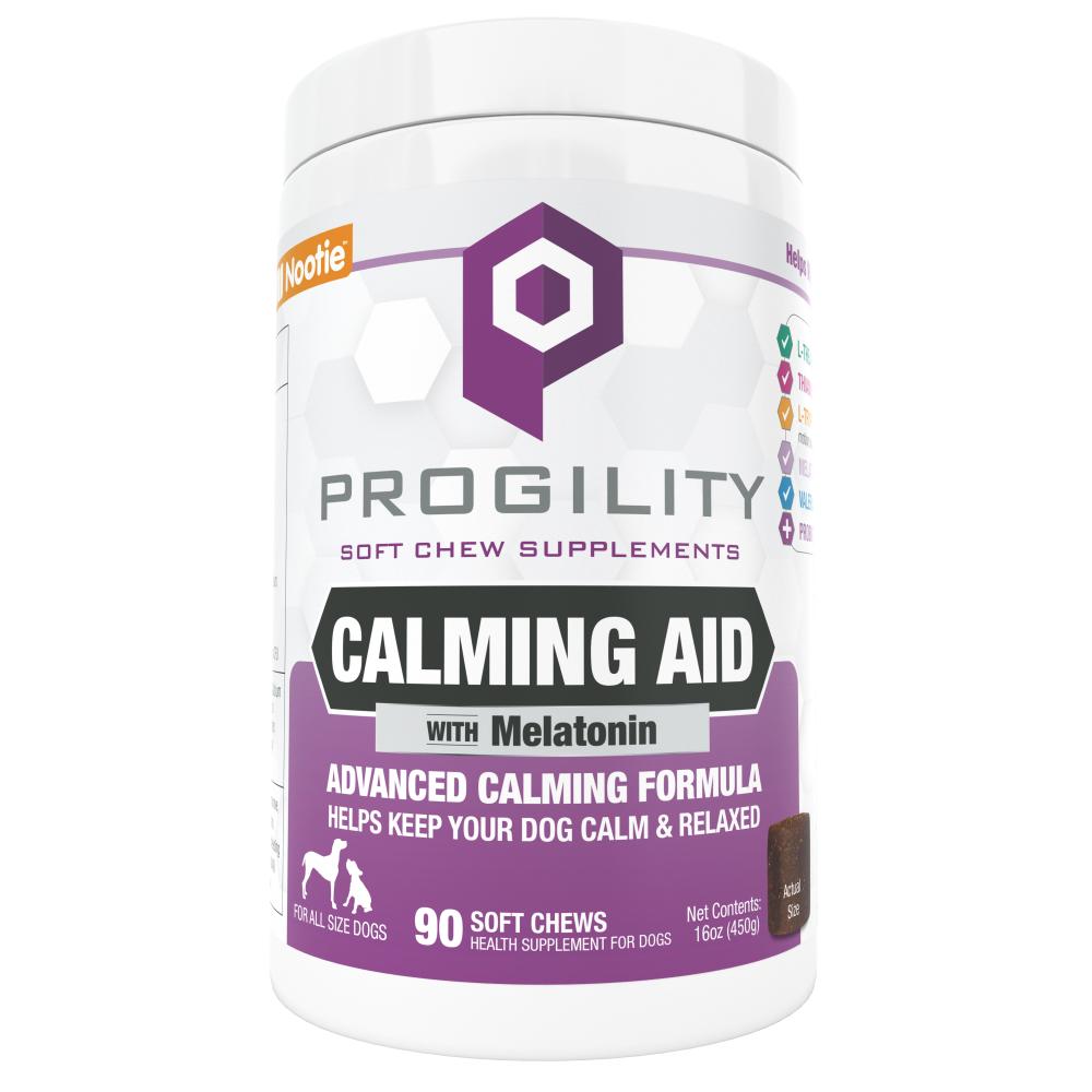 Help your dog relax with the Progility Calming Plus Melatonin Soft Chews by Nootie! Designed with a highly effective combination of active ingredients, these chews help to reduce stress and anxiety and support the immune system. While Melatonin helps to reduce stress due to noise phobias, separation, anxiety, or environmental, L-Tryptophan helps to enhance calming effects and stabilize your pup's mood. The L-Theanine in these soft chews helps promote relaxation and lower stress, as Thiamine supports the immune system and aids the body to withstand stressful situations. Made with probiotics for digestive health, these chews are cold-pressed for optimal effectiveness. And with a yummy bacon flavor, your pup will be feeling calm in no time thanks to these tasty chews! Contains 90 soft chews.