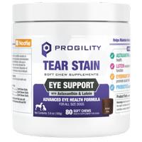 Maintain optimum eye health and function for your pet with Progility Tear Stain Eye Support Soft chew. These chews promote long term ocular health with its added Astaxanthin ingredient. Balanced with Lutein to support normal eye function and Eyebright Herb to promote ocular health. These chews are also complete with probiotics to support immune health. Contains 80 soft chews.