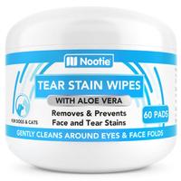 Worried about your pet's tear stains? Look no further than Nootie's Tear Stain Wipes for Dogs & Cats! These presoaked wipes are designed to help fade current tear stains and prevent new stains from developing. Gently formulated with plant-based glycerin and aloe vera, they are ideal for sensitive skin areas around the eyes and face where staining occurs the most. Plus, no rinsing is required! Keep your pet's face looking fresh with these convenient tear stain wipes! Contains 60 pads.