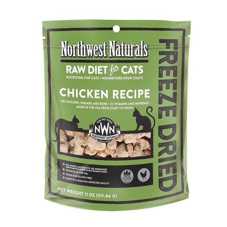 Mother Nature knows best. Feed your cat the way nature intended with Northwest Naturals Freeze Dried Cat Nibbles Chicken Recipe! Made with muscle meat, organ meats and natural raw ground bone, with no added fruits or vegetables. No added hormones and antibiotic free. Easy to store and feed. Simply pour and feed straight from the bag dry, or rehydrate with bone broth, goat milk or water. A true carnivore diet your feline will love! Net wt. 11 oz.