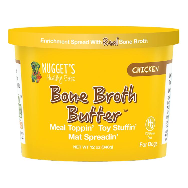 Did someone say chicken? Give them a taste of the good stuff with the Chicken Bone Broth Butter from Nugget's Healthy Eats. Every bite includes a premium blend of organic raw, fermented turmeric blend with ginger and kerif, which provide unique enzymes and essential oils to your pets diet. In addition, the kefir probiotics help improve gut microbiomes.