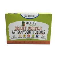 Cool and udder-ly delicious, Wild Blueberry Yogurt from Nuggets is not just tasty, it's a healthy snack! Nuggets uses milk from grass-fed and free-pasture cows, free from rBST, to make a delicious yogurt. Billions of probiotics, wild blueberries, unsweetened applesauce, pumpkin & Ceylon cinnamon are added to provide a delicious nutrient-dense treat rich in antioxidants, vitamins, fiber and fatty acids to help support digestion and a healthy skin and coat. Stock up on these, your dog will absolutely love them! Made in the USA.