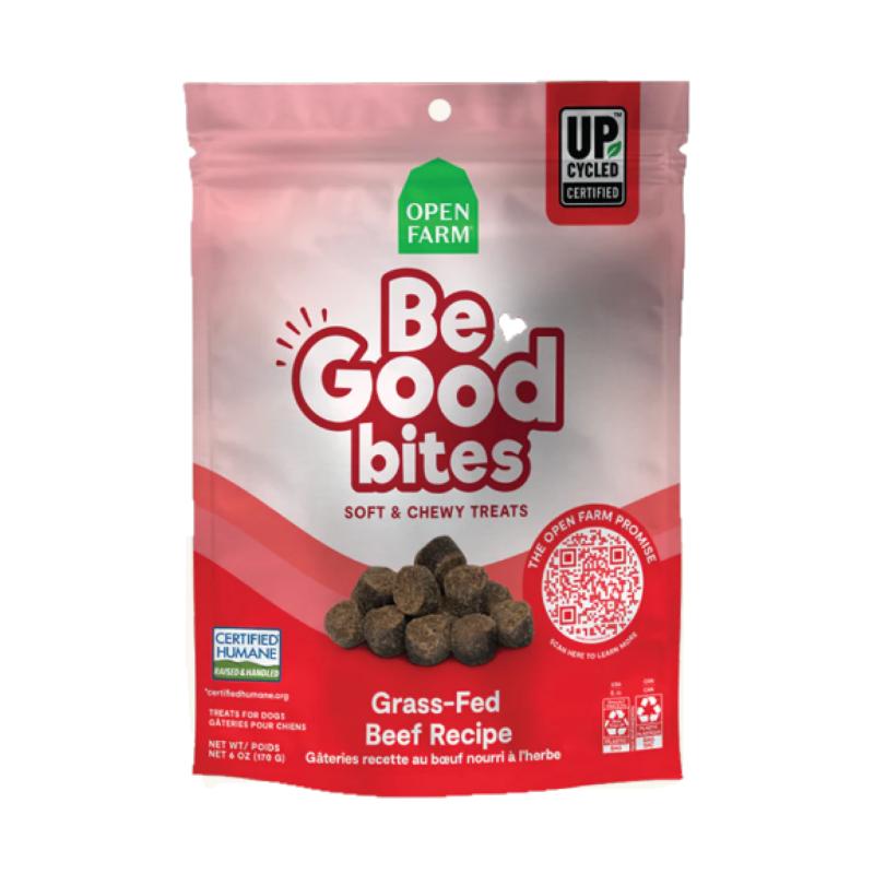 Open Farm's Be Good Bites Beef Treats are simply delicious! These soft and chewy bite-sized treats are made with wholesome ingredients like animal welfare-certified beef, apple pomace, and rice bran that are good for your pup and the planet! And with the tasty addition of sweet potato and blueberries, your pooch gets an extra boost of antioxidants, fiber, manganese, and vitamins A and C, too. Plus, at 2.5 calories a treat, they're the perfect training reward! Small in size but big in flavor, these beef bites are just what your furry friend needs!