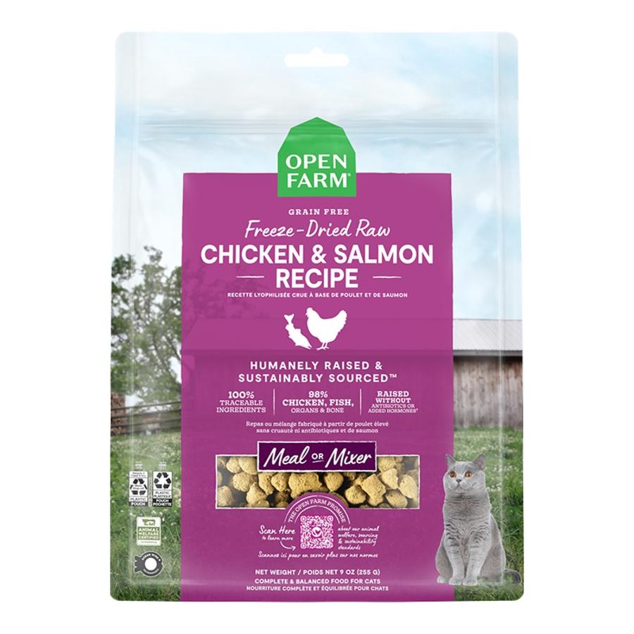 Give your cat the best of land and sea with Open Farm Freeze-Dried Raw Chicken & Salmon Morsels. This raw-inspired recipe is gently freeze-dried to preserve nutrients and flavor, delivering a protein-rich, prey-model diet cats naturally crave. With 98% humanely raised chicken, wild-caught salmon, and nutrient-dense organs, it’s perfect as a complete meal or an irresistible mixer for picky eaters.